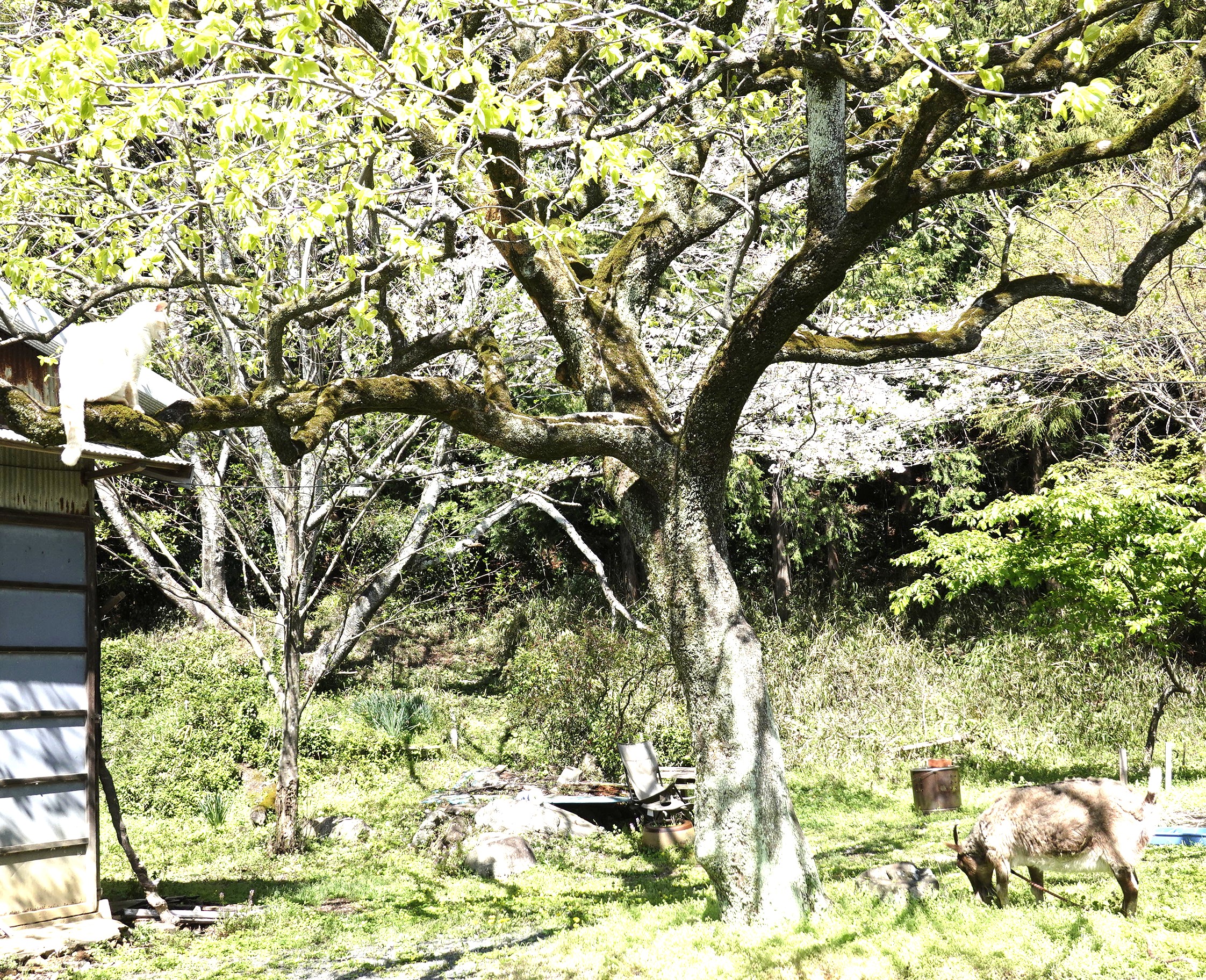 ネコ ヤギと花見です