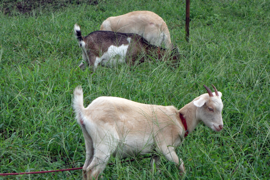 今年の6月に、新入りが2頭来て、変な奴が来た、草ばかり食べて、メ~メ~と鳴き ワンワンと鳴くのではないか? 声が変だと思っていた事でしょう。今は、距離感は大部近くなりました。畑では一緒に遊び、リードは無し。