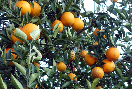 ヤギお世話かかり見習いの後ろの樹は、ネーブルオレンンジです。今年は豊作で、無農薬で果皮は美しくないが、甘くて、適度な酸味があり、美味しく食べています。ヤギさんも大好物です。