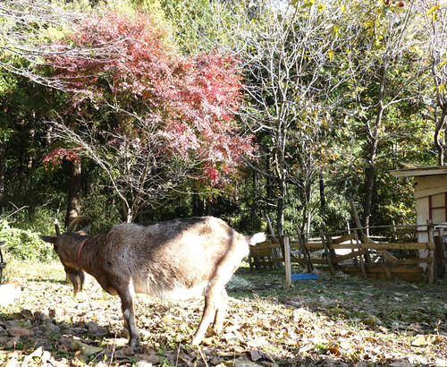 数日前 裏山がらチリン チリンと鈴の音 と共に3頭のイヌが裏山を駆け下ってきた 歩型の狩猟犬で ヤギのジュンヤギ舎の中へ駆け込んだが、イヌたち柵の隙間から入ってきてヤギ舎まで 奥さんがダメダメと言っている そのうちに飼い主が、イヌにつけたGPSで追いかけてきて、イヌたちを制した