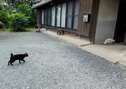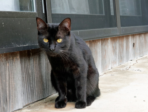 ノッコは外にでたくても 関所のように横たわっているので 出ずらい どちらが家ネコかわからない 困った状態です