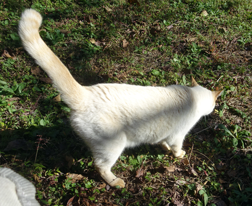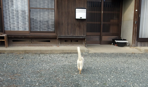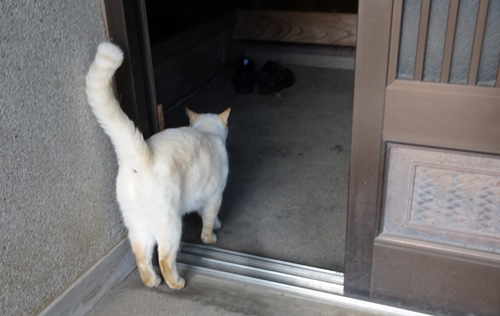 ノッコと声を出すと、反応あり。シッポを立てて、すっ飛んで家へ一直線で帰ります。