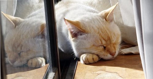 わが家では、ネコも飼い主ものんびり。あまり生産性のない二人です。