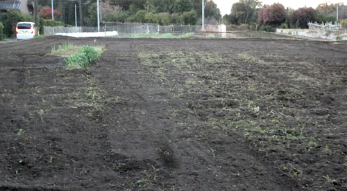防寒着を着ても寒い。トラクター作業の悩ましいのは、途中で止めると、撹拌した場所と雑草のの区分が明確に。特に困らないが、気になるのです。よって、畑全部 ノンストップ作業 二時間です。