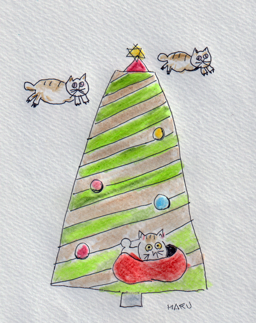 終日年賀状準備をしつつテレビを見る。ノッコもコタツネコで、一緒に過ごす。