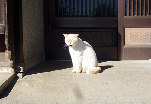 その後で。ネコ語でお帰り、速く家に入ろうよとお誘い 良く理解できます。