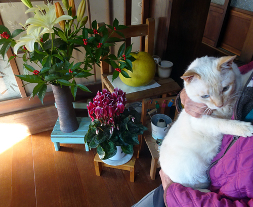 15歳の高齢ですが、朝は、ご主人に起きろと催促 甘える、甘える それが嬉しいご主人です。これを溺愛といいます。