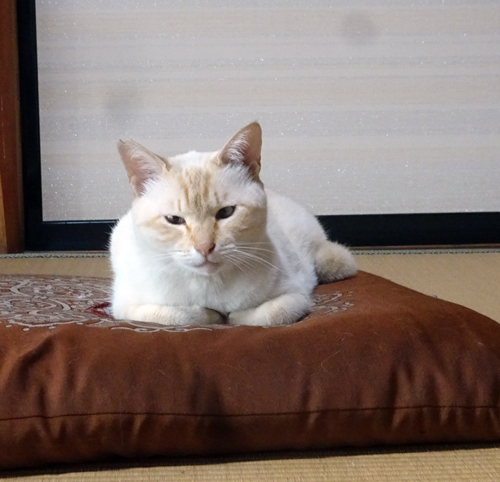 車で帰ってくると、どこにいるか。即来る。夜は、奥さんの布団の横でゴロンとして甘えて寝る。