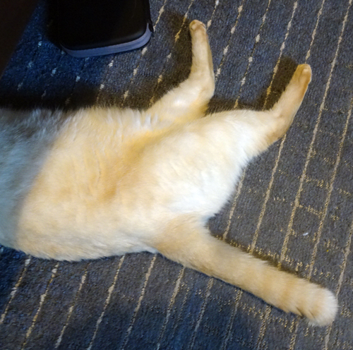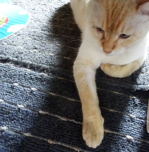家ネコになり、メスネコ ノッコ 避妊に獣医科医院に行き、手術前の剃毛で、避妊済み、びっくり。