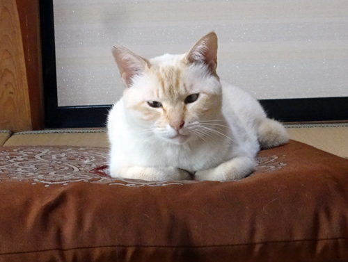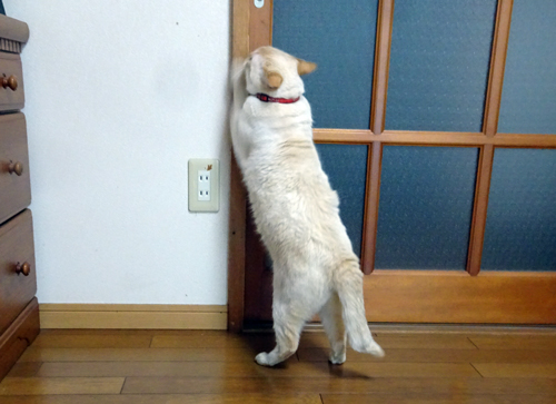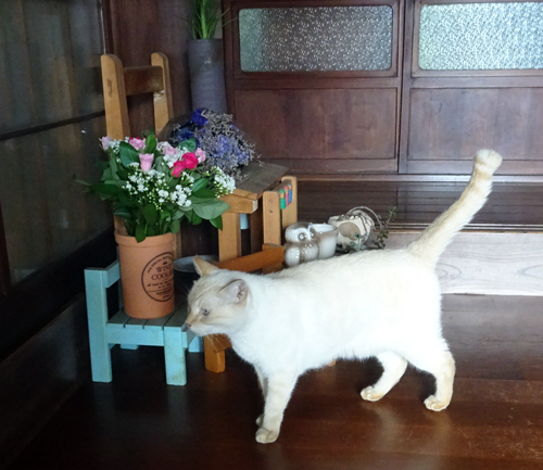5年程前 大人ネコになってから、玄関から訪問せず、台所横の勝手口で佇む。礼儀正しいネコと感じた。数日佇み、家ネコになり、ノッコとなずける。