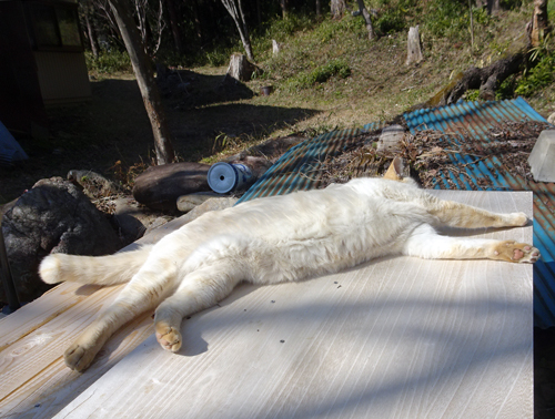 ネコ、ノッコは一緒に居たい。でも、ヤギが近寄れば逃げる。でも、つかず離れずの距離で居る。