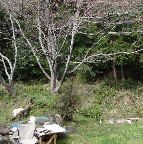 里山を背っているので、周囲より開花が少し遅い。