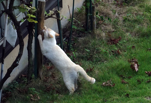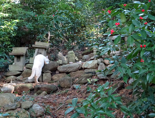 100m程前方のネコは豆粒サイズ。遠くからノッコと呼べば、こちらにダッシュ。ネコは自分の名前は解からなくても、音の響きで理解しているようだ。ペットはPCせず、ネットと違って、コンタクトはアナログです。