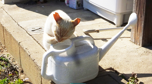 ノッコはモテる、可愛いし、小柄の美形です。この季節は特に人気者。噂を聞き付けて、複数の訪問ネコが。