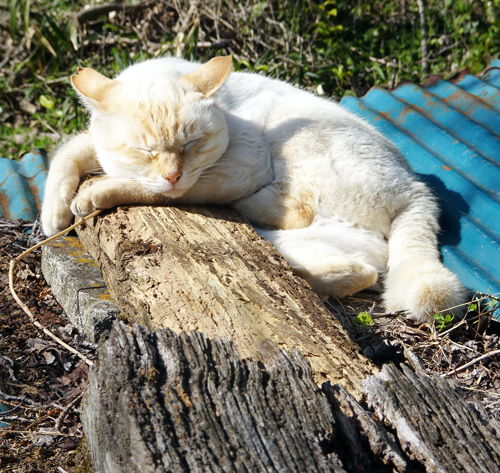 特に、キジトラは、頻繁に訪問。昨日は、ノッコがパトロールに出た外で、いずまいを糺して待っている、遭遇し、ノッコ。あんたなんか好きじゃない、近寄らないで ミャーと一目散に家の中に。残されて、寂しそうに居る。互いにネコパンチするのでないのでその点はほっとしています。どうも、片思いで、ノッコ うざったそうです。その後は外へ出ず、コタツの中で寝ていました。