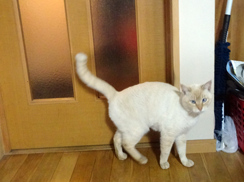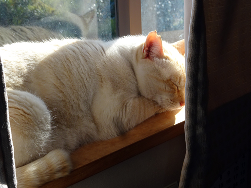 昨日 車中のNHKラジオで、ネコ特集があり、とある事情で外の子ネコを引き取ることになり、ネットで飼い主募集したら、多数反応ありましたが、家で過しているうちに飼おうと決心し、家ネコとなり、顔をなめられ嬉しく家族でメロメロになったとの放送がありました。名前は、朔(サク)と名付けました、朔は、「はじめ」の意味です。