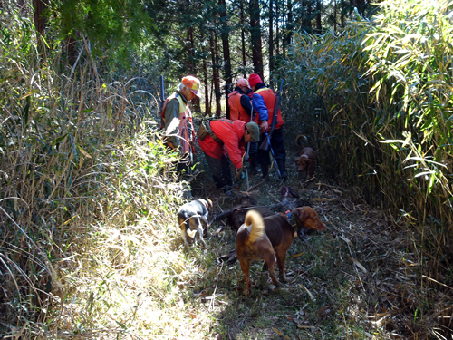 猟友会メンバーも高齢化して、山野を歩くのはこんきいと語り、猟犬が追い込んでくれるので、捕獲できる。猟犬の飼い主のお話しでは、紀州犬のミックスで小柄です。主人の言う事は聞き、甘える。可愛いよ。眼を見ると可愛いし、おとなしい。捕獲現場に遭遇するのは年1~2回。貴重な経験でした。家から歩いて10分です。
