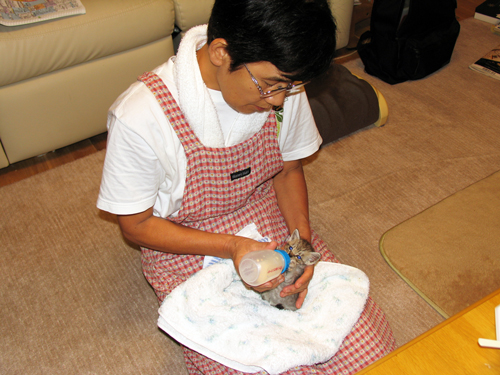 配偶者 困ったと言いつ、嬉しそうにミルクをあげつつ、お世話していました。その後 ご近所の音大生に引き取られました。家から去るのは寂しそうでありつつ、ネコの幸せを願っていました。その後は幸せなネコ生活です。