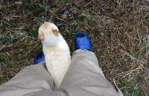 昼間 畑でヤギが草を食べている横を、ノッコが別のネコに追っかけられて、家へ一目散。最近追っかけられることは無かったのですが。体重が増えても、まだ、イジメラレっ子です。そのかわり、逃げ足は速い。ヤギのジュンが見ていてあっけにとられています。