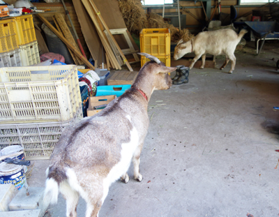 家ヤギの前でカウベルを鳴らすと、音にビックリしたのか、首につけられてはたまらんと思ったのか逃げ回っていました。