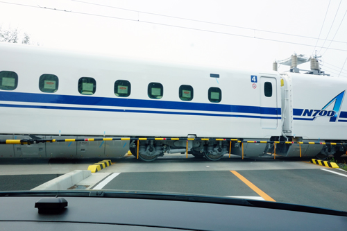 新幹線車両に遭遇するのは希です。N700系だとワクワク。車両の風格が違います。悠々としています。新幹線フアンの、保育園児のK太は見たら、嬉しくて気絶するかも?