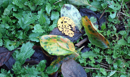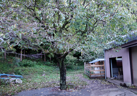 庭の柿の木は、台風ごとに葉を落としています。紅葉した葉は落ちるのですが、緑の葉は落ちません、頑張っています。葉も紅葉して落葉するのでしょう。