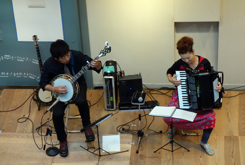 18日昼間 フロイデンホールでのロビーコンサートは、バンジョーとアコーディオンでした。奏者の稲川友則さんと、柴田貴子さんは東海地方を主として、全国的に活躍されています。アコーディオンは、時折演奏を聴きますが、プロのバンジョー演奏は初体験でした。楽器はマッチングしていました。