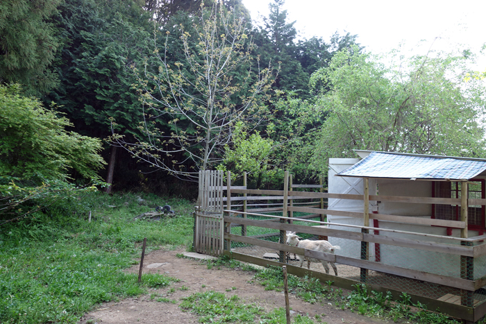 到着そうそう 満開の藤の木々の説明。以前訪問した時は、咲いていなかったので 咲く花たちに圧倒されました。住宅地の中に森があるという印象です。3月末に、我が家で 桜とヤギのカフェを開催したことと重なり、花が咲いている時の催しに、おもてなしを感じました。