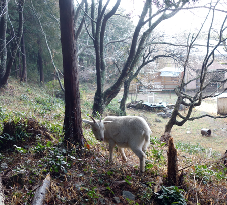 ● 河津桜 満開です、ヤギ舎の横にあるので、咲くか、花をヤギに食べられるか これも攻防戦です。