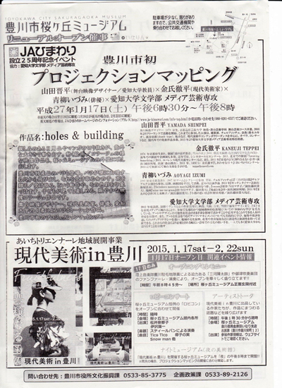 現代美術 in 豊川 信金旧いなり支店会場で、新城市鳳来出身の鈴木孝幸さんの作品が、1階に展示してあります。作家は、作品に取り組む姿勢が真摯な好青年です。話していると、「気持ち良いオーラ」をこちらにくれます。