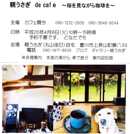 今回ご縁ありまして、カフェ爾今さんの出張カフェ de café(出 カフェ)を親うさぎ自宅で開催します。