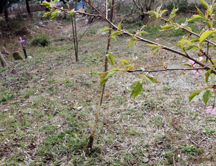庭には、桜が咲き、木々が新芽をだし、スミレやタンポポも彩を添えています。