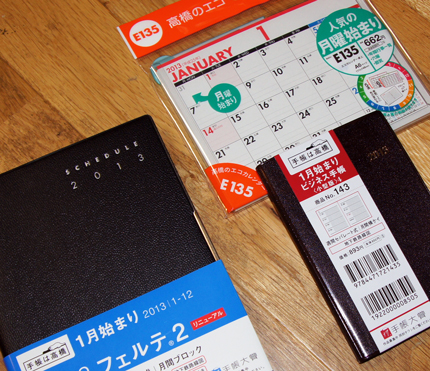 手帳、ビジネスダイアリー、卓上カレンダーの3点です。