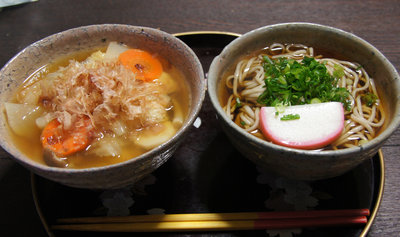 習慣となりました。2日の朝は、雑煮と蕎麦のコラボです。