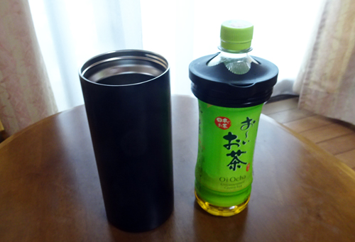 ステンレスは二重構造になっていて保冷効果あり。蓋を替えるだけで、ダイレクトに冷水を入れても良し、ペット茶も入ります。6時間程の保冷効果あり。