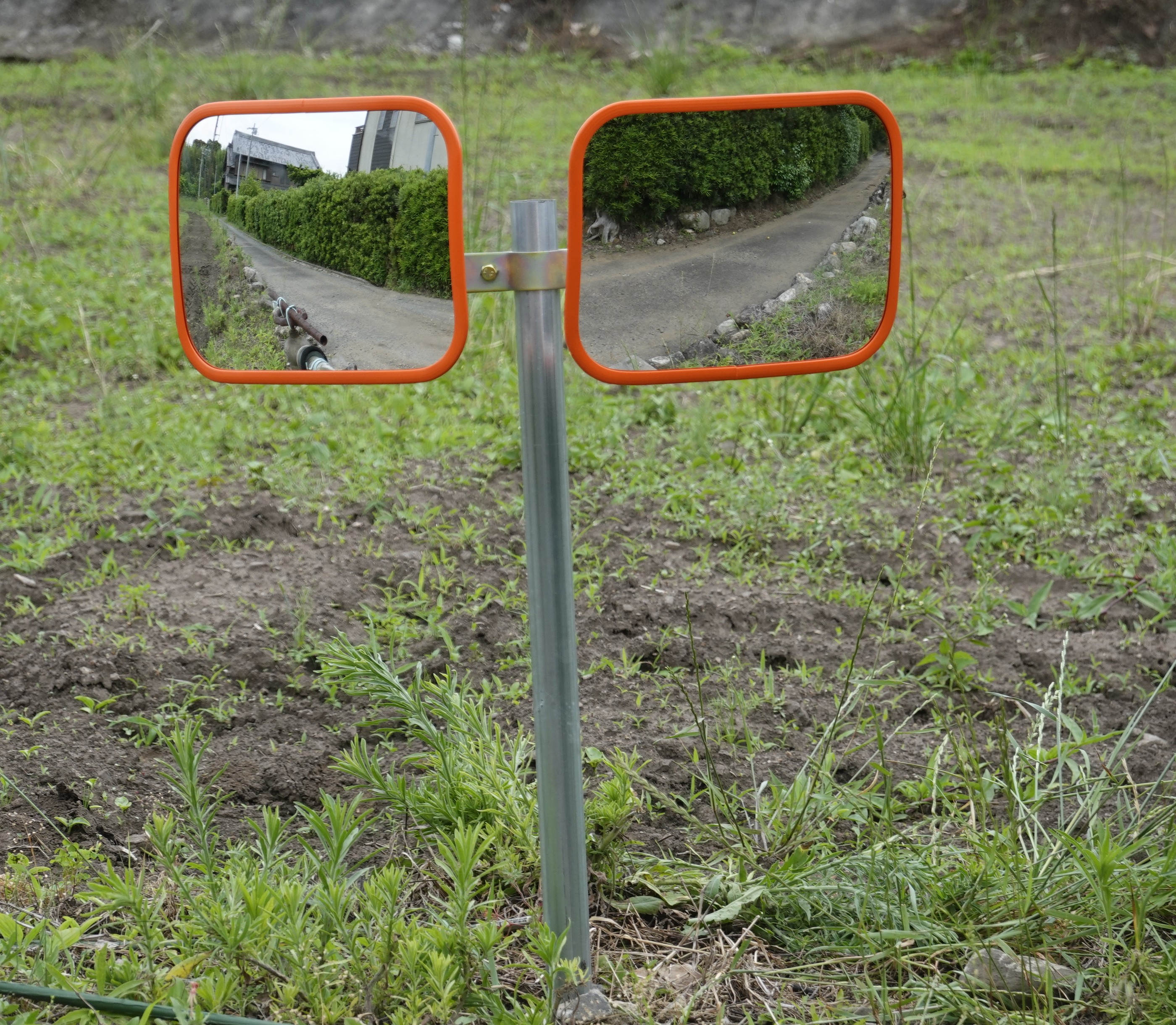 新たにカーブミラーを購入するので、リサーチした ご近所に狭いが交通量の多い道があり 皆生け垣があり出るのにブラインドになっている家が6軒 皆出口にカーブミラーがあり、形さまざま 丸か四角 ミラー1個か2個
