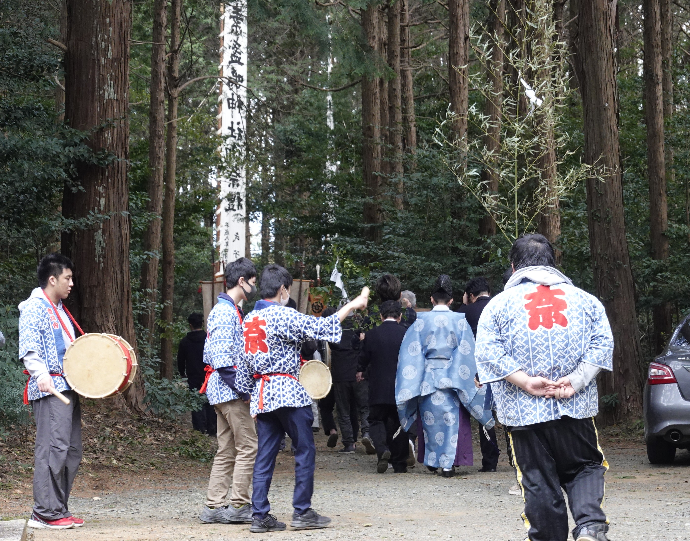 氏子で若手を選抜し、交通安全と道案内に付き添い