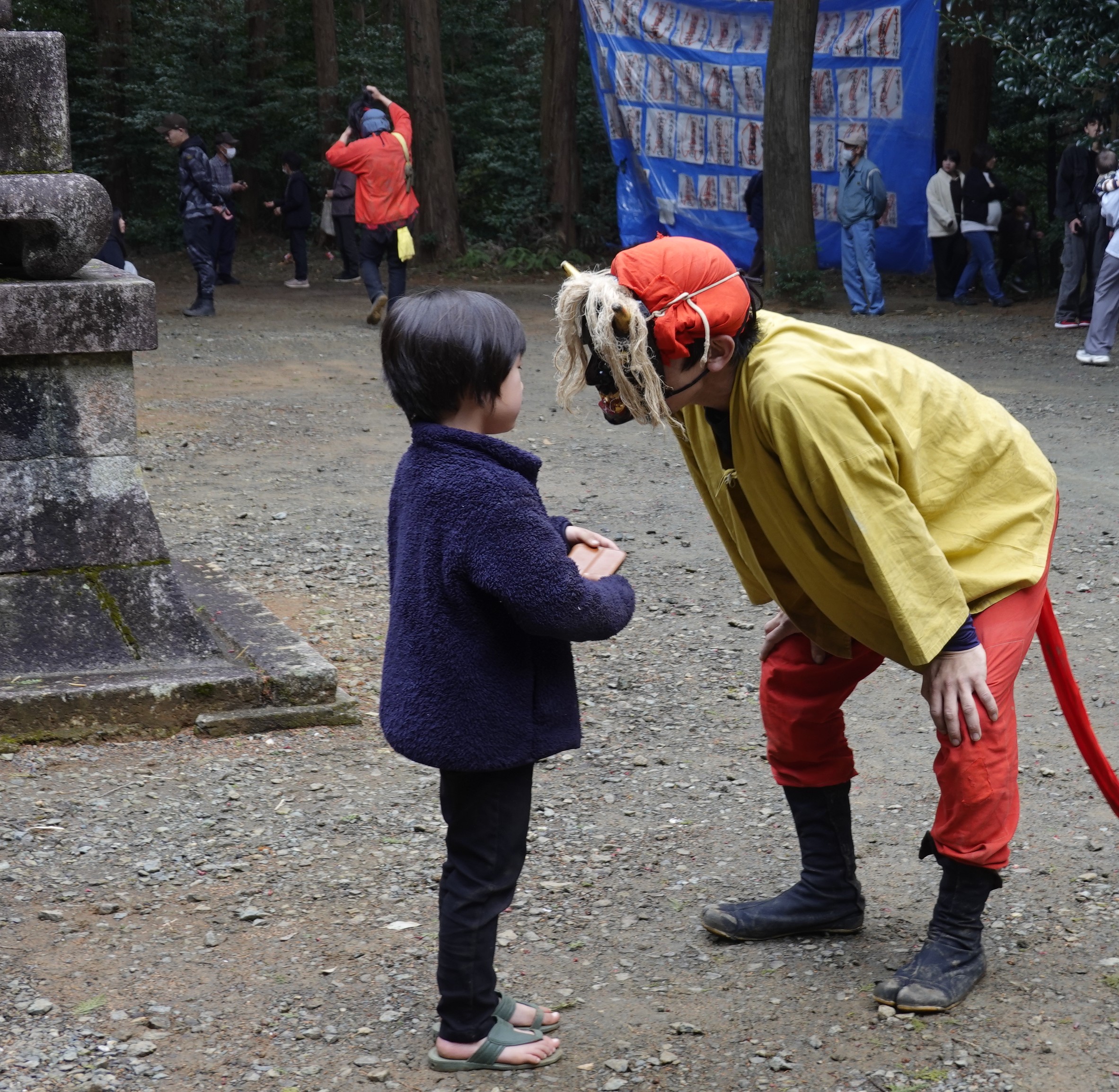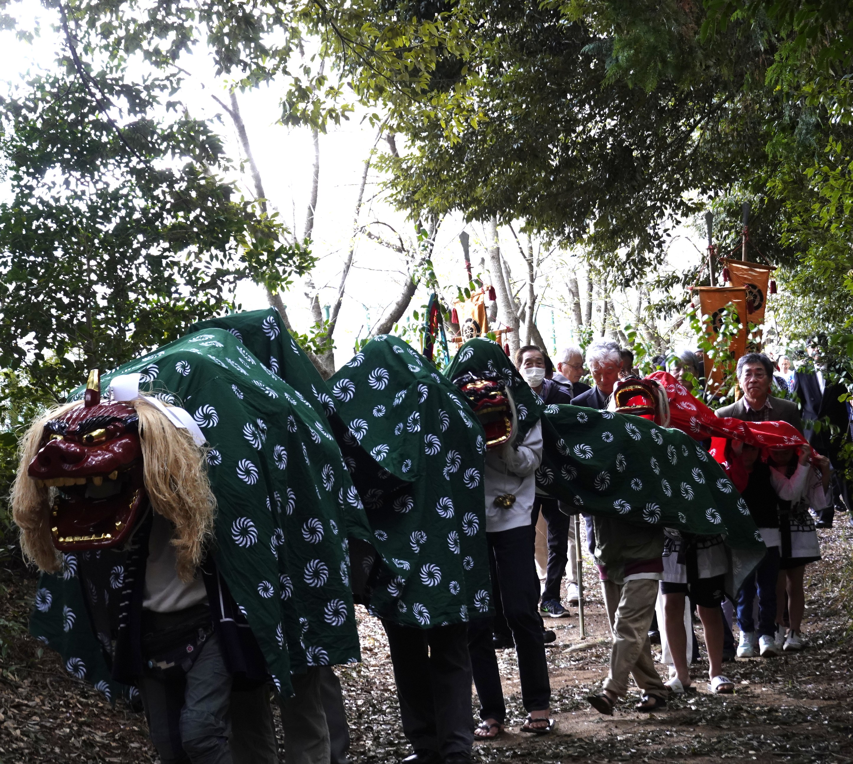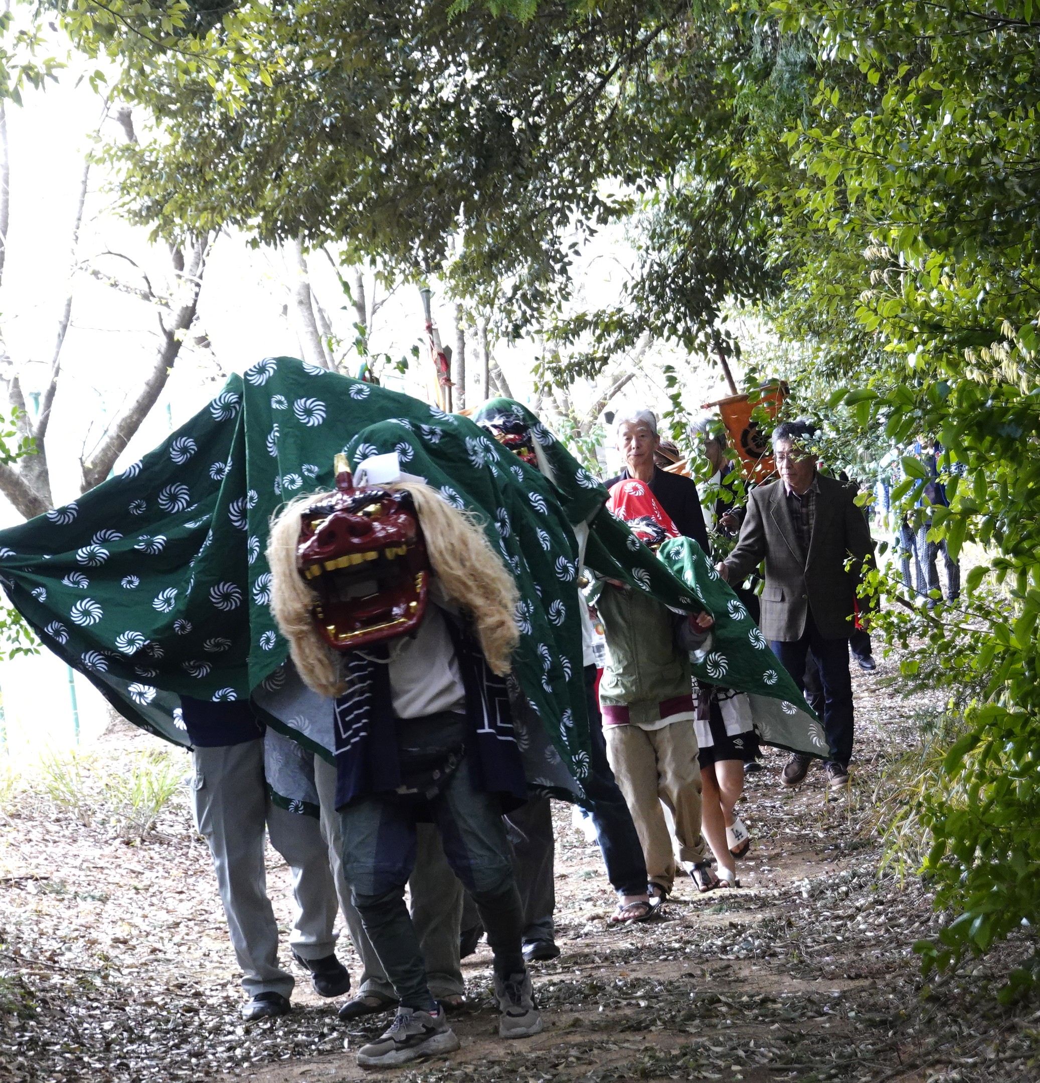 神事の二宮様への行列 親獅子の後について粛々と進んでいます