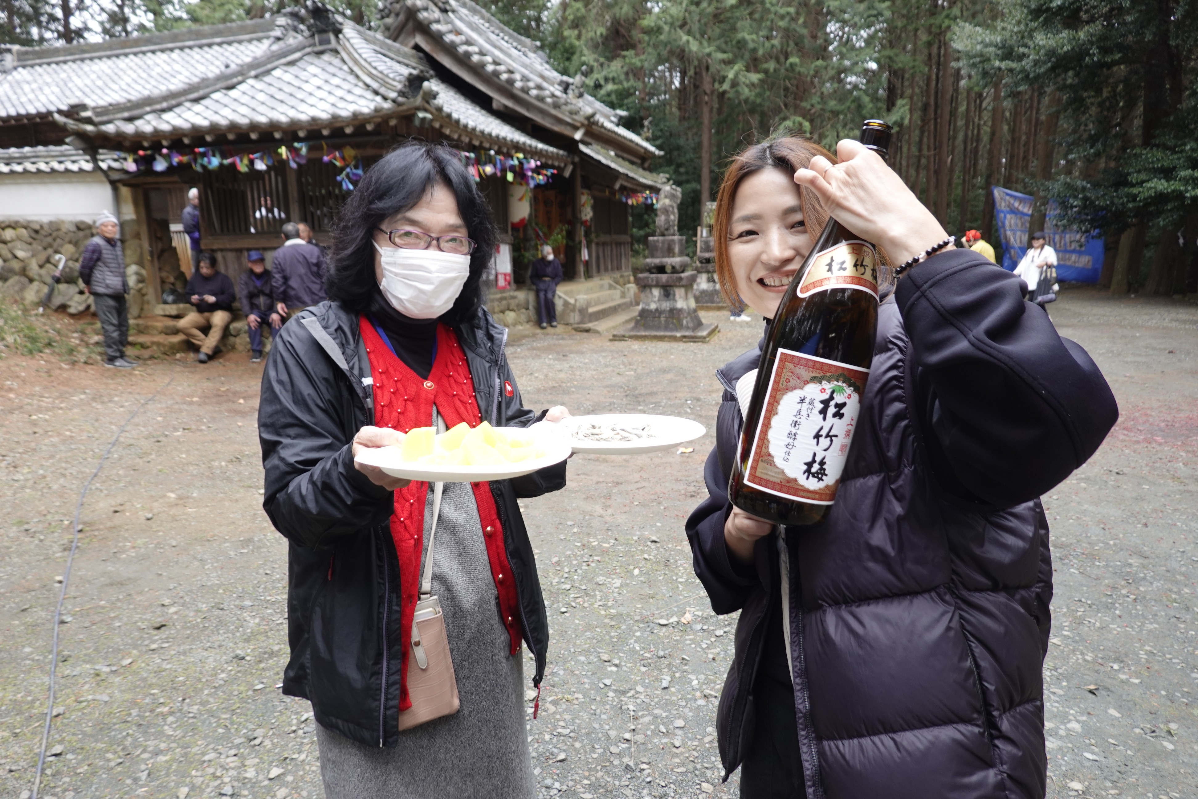 祭事のお役に、酒番があり 2人で参拝者に一升瓶を持ってふるまう係 従来は男性だったが、今年は奇しくも氏子の女性二人 大好評 皆 冷酒をいつも以上に飲んでいた