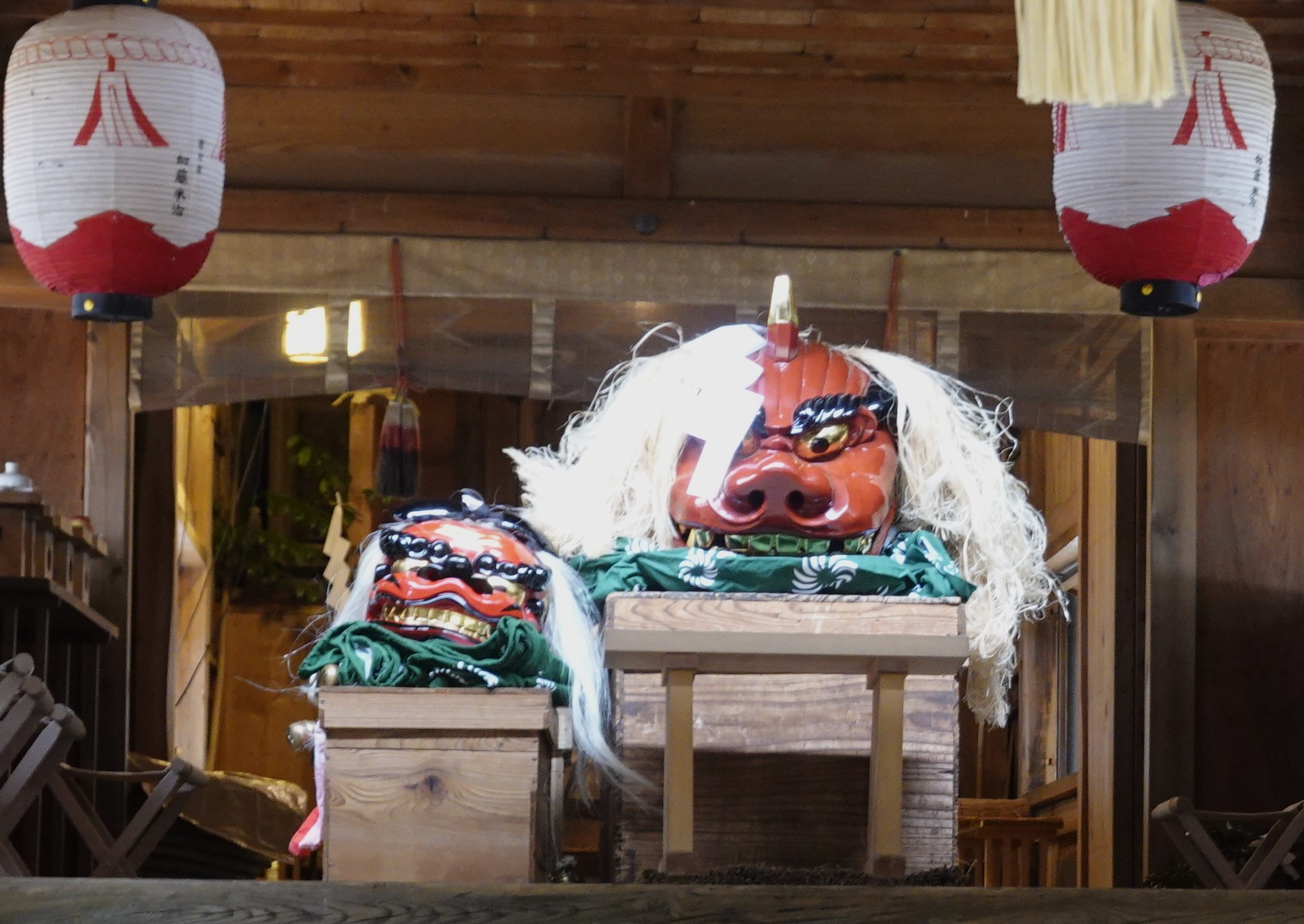 子ども獅子は最初一頭だったが男の子たちが独占していたので、氏子総代が女の子獅子を追加し二頭となりました