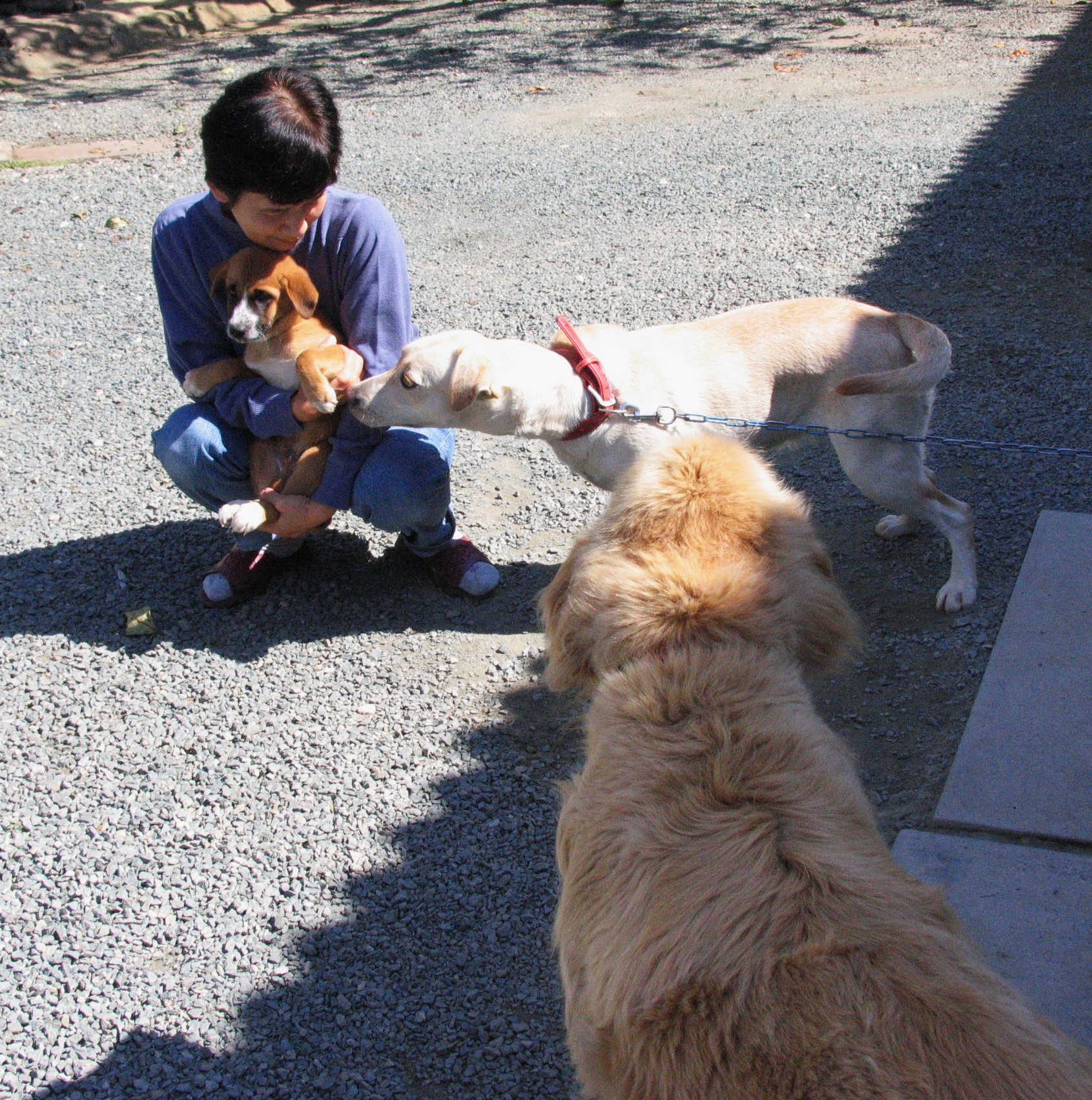 ノッコ帰るよと声かけすると、じらしながら家へ 奥さんがお誘い上手 私は呼ぶと反応が弱い 声が低すぎるので、高い声がいいよとアドバイス