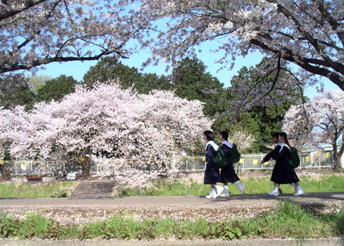 佐奈川沿いを歩く、ピカピカの白い靴を履いた新一年生をパチリ。広報に載った後にお母さんから電話。うちの娘が載っているようで、写真を貰えないか。喜んで大判写真をプレゼント。豆粒みたいな顔でも、母親にはわかるのです。