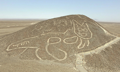 下の写真は、世界遺産 ペルー ナスカの地上絵 ネコ科の動物。