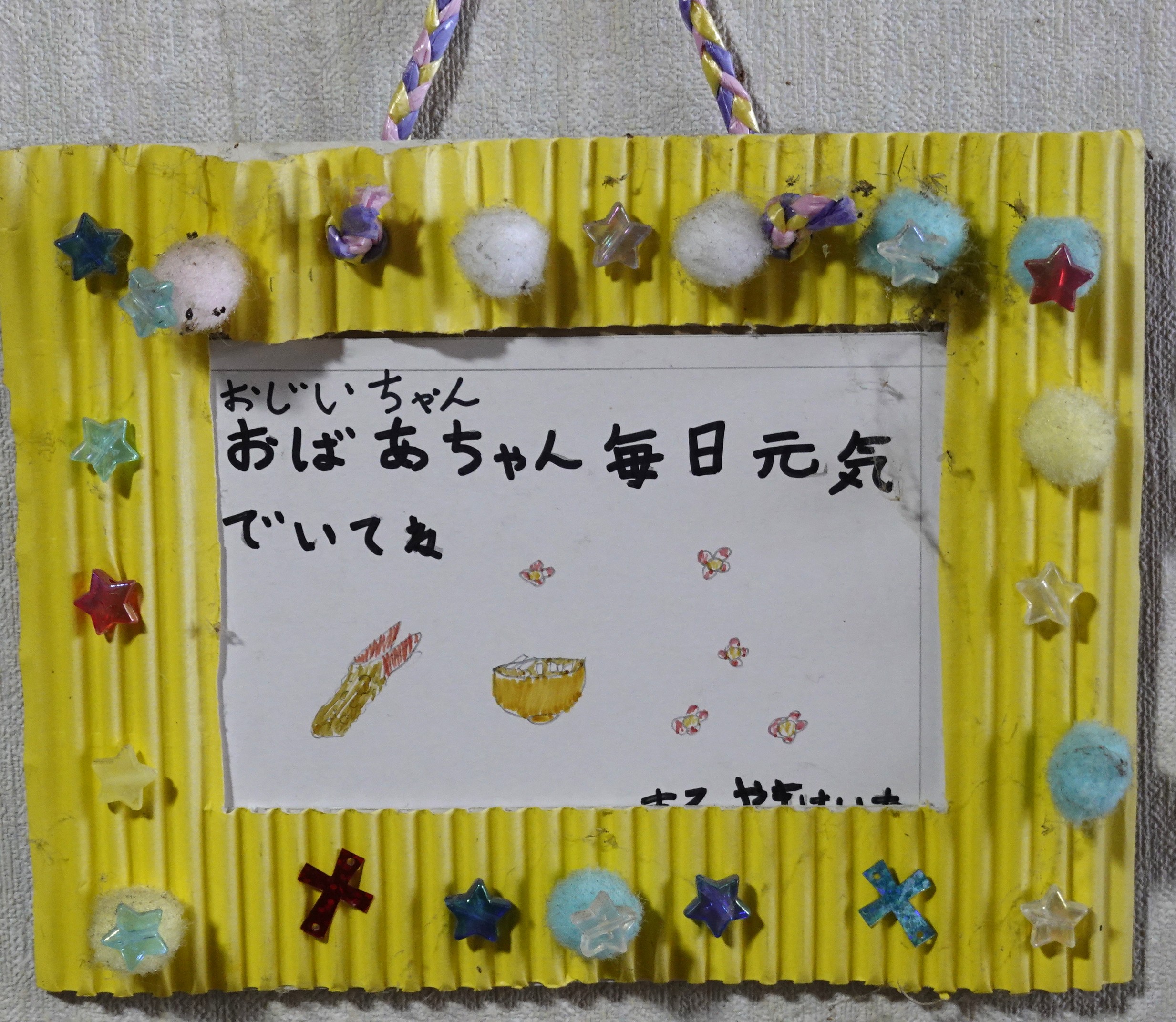 玄関の、小学生のときの敬老会メッセージを毎日、見ている