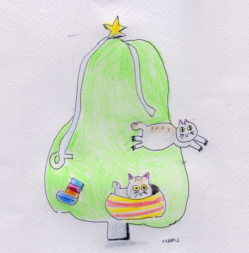 子どもたちにとってイブの夜は、サンタさんが訪問して、プレゼントを持ってきてくれる日。ワクワクの夜です。 ヤギさん ネコ君 明日の朝はプレゼント あるのか?
