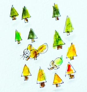 森の中にいるのは何?と聞いたら リスさん! と明解 リスに見えて良かった。