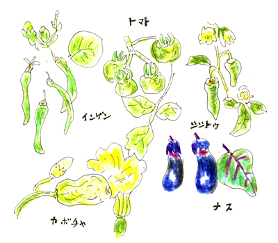 この時期の会話に、「暑い」と共に、「食欲がないので、ソーメンとナスばかり」という会話もよくききます。田舎ではどこの家も、立派な家庭菜園があり、少々の化成肥料と鶏糞で無農薬栽培。それで立派な野菜が育っています。