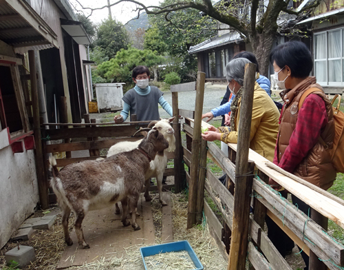 奥さんの短歌仲間で、先生、大御所ばかり。皆 短歌集を発行している歌人です。豊橋からの来訪者 庭のサクラと、ヤギもおもてなし、ネコも、たくさん来たなと近くで様子を窺っている。自然に生えている、日本スミレや希少種植物に大喜び。日頃見慣れている植物だがこちらより詳しい。さすがです。