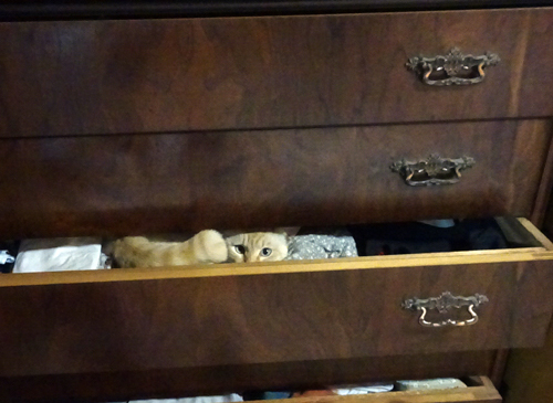 室内は、安心して、リラックスできる場所。暇なときは、室内運動会。昨日はタンスに入り込み、ご機嫌です。