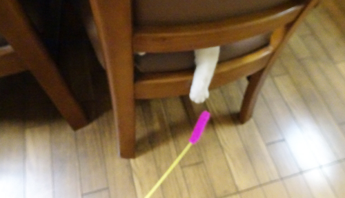 お楽しみは ネコじゃらしで遊ぶこと 嬉しそうに飛びついています。